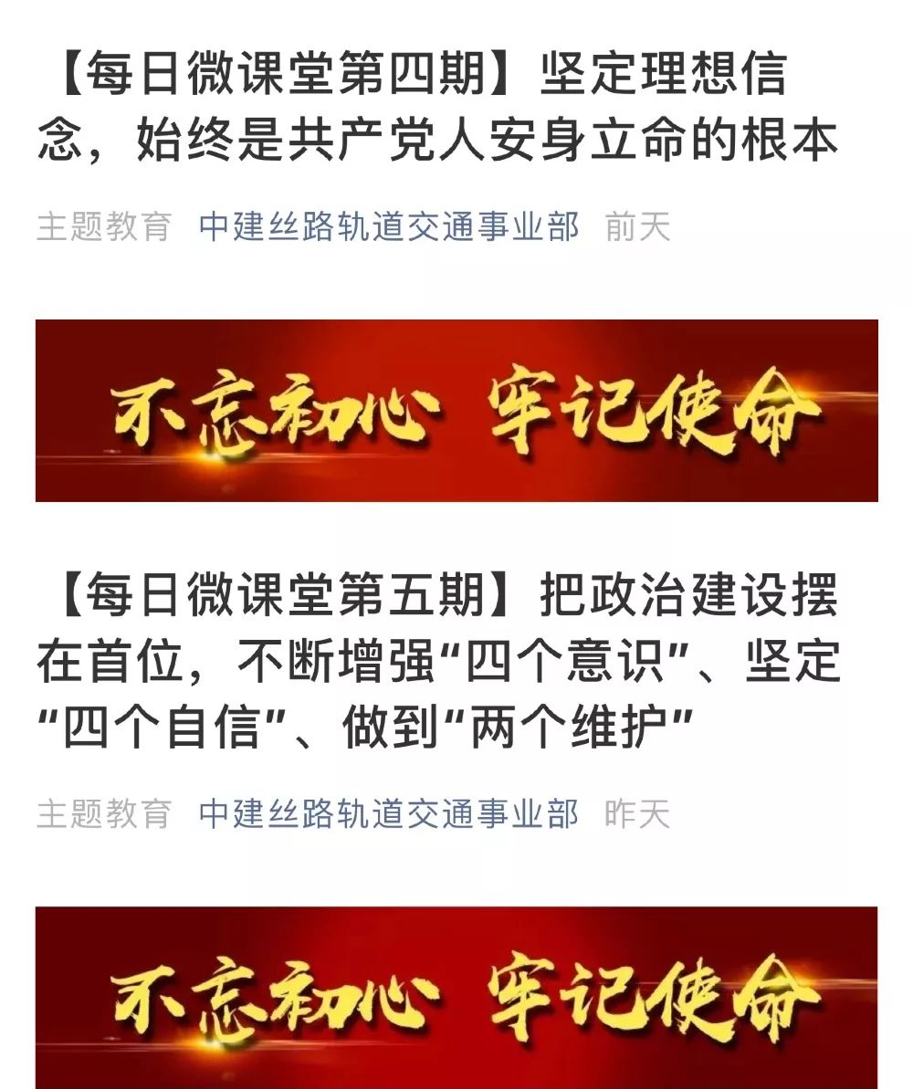 充分运用新媒体平台,多措并举推动主题教育,在官方微信上开设“主题教育每日微课堂”,微课堂设立“读原著”“悟原理”“学党课”三个板块,发布内容以主题教育学习书目内容推送,党员同志结合工作实际谈感悟、分享“丝路故事”,微党课视频学习教育为主,实现了线上线下同步学习,有效提升了党员干部党性修养和综合素质,进一步激发了党员自我学习教育活力。