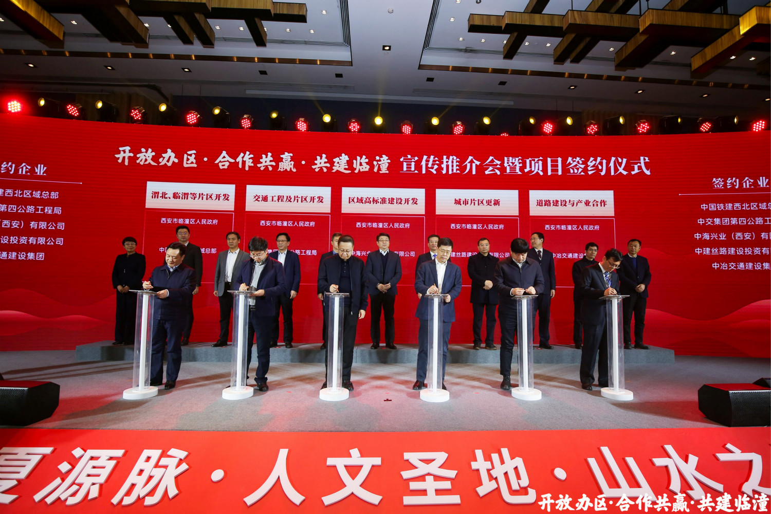 12月15日下午,由中共西安市临潼区委员会、西安市临潼区人民政府主办的“开放办区 合作共赢 共建临潼”宣传推介会暨项目签约仪式成功举办。中建丝路(中建西北区域总部)党委副书记、总经理魏德胜,党委委员、副总经理段辉乐出席签约仪式,总承包事业部主要负责人参加签约仪式。