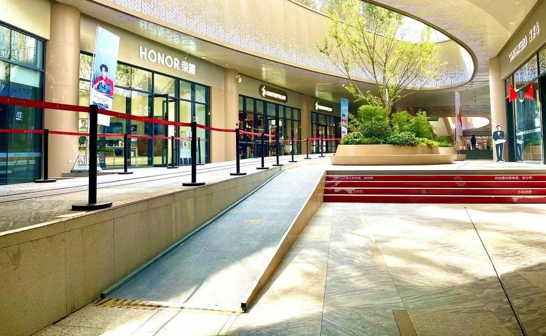 项目全段设置路缘石坡道116处共计1134平方米,铺设盲道9.55公里,共计3818平方米,沿线交通信号灯配置盲人提示音系统,安装完成公交站台设施6处并配置有交通语音提示设备。点亮梦想,为爱起航。中建人用实际行动为残特奥会加油,切实为全市残疾人和全体市民营造良好的无障碍环境贡献中建力量,让城市无“碍”有爱。