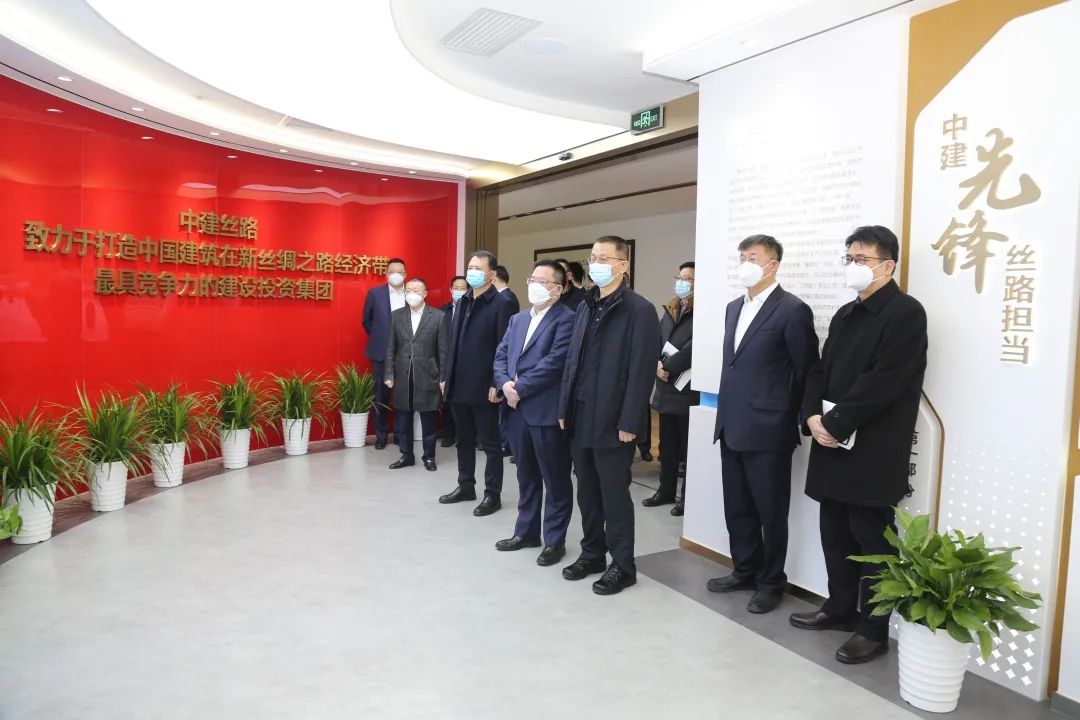 座谈前,解宁元一行参观中建丝路企业展厅,全面了解中建丝路的发展历程、经营业绩、市场布局和企业文化。