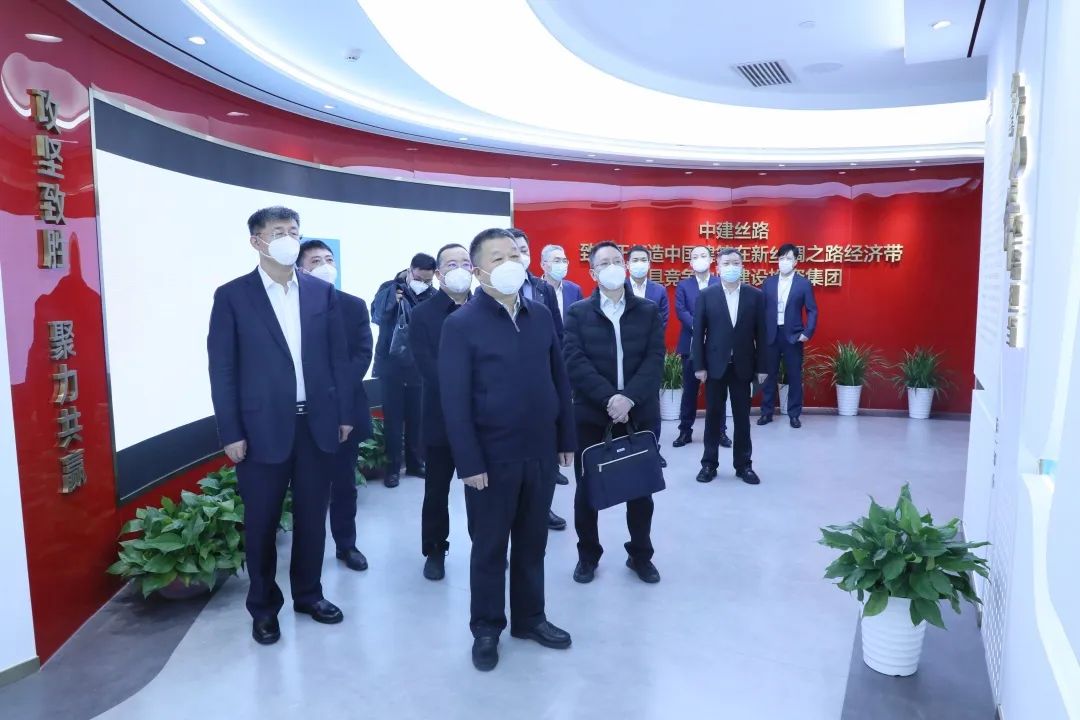 座谈前,付涛一行参观中建丝路企业展厅,全面了解中建丝路的发展历程、经营业绩、市场布局和企业文化。